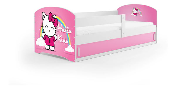 Gyerekágy 80 x 160 cm Lukan (fehér + Hello Kids minta) (ágyráccsal, matraccal és tárolóhellyel)