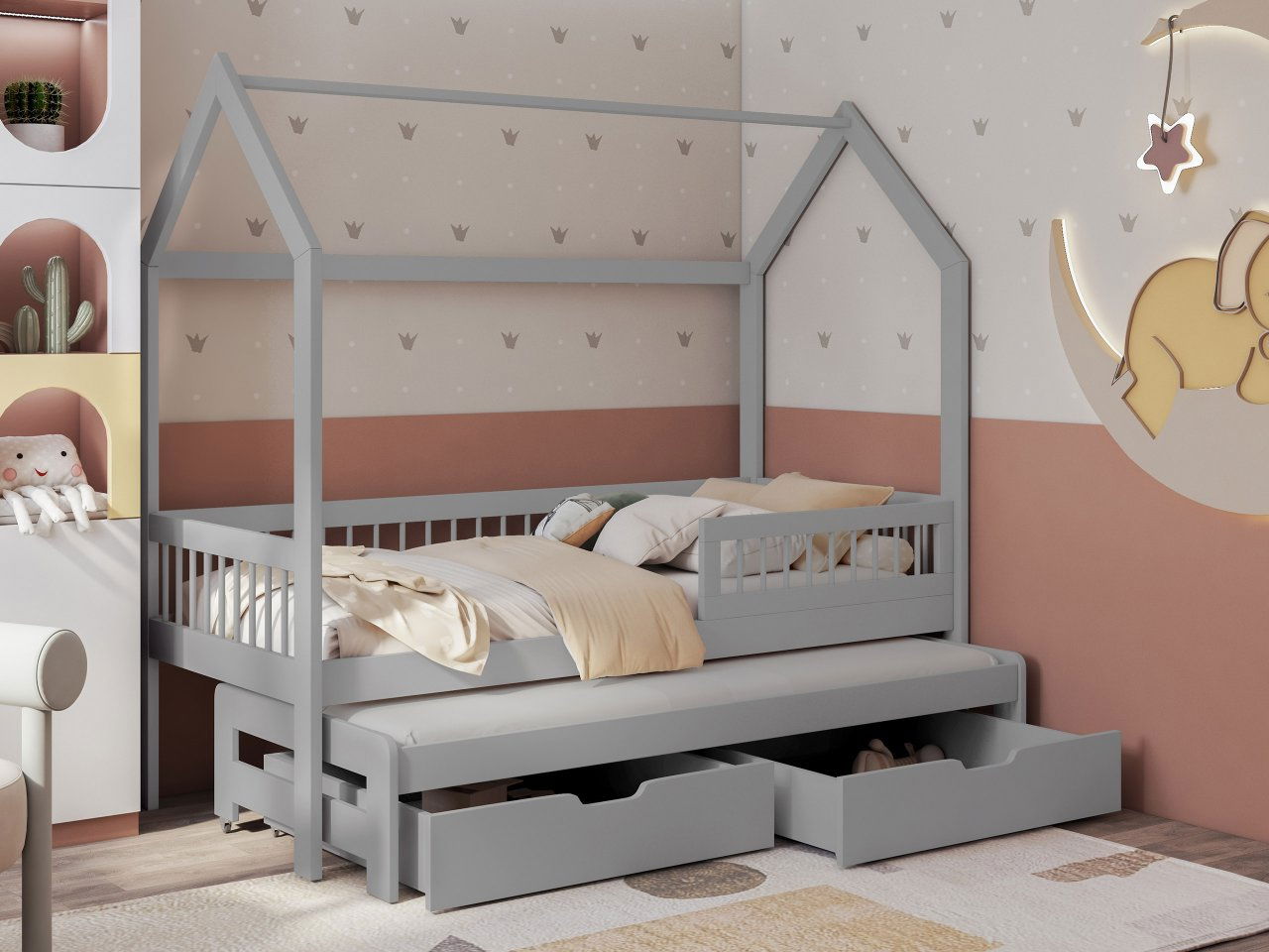 Gyerekágy 90 cm Kerlox (szürke) (ágyráccsal) (tárolóhellyel)
