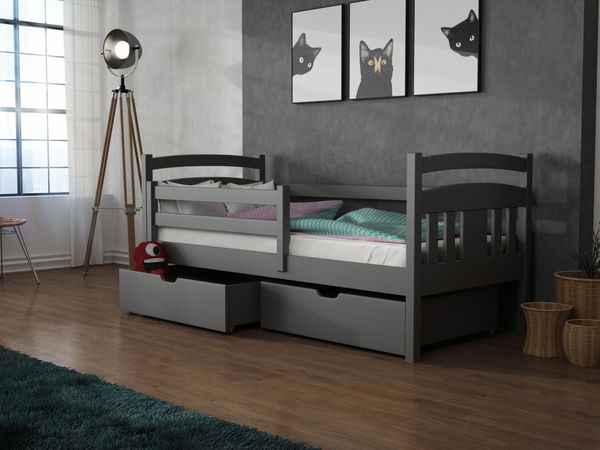 Gyerekágy 90 x 190 cm Kayla (ágyráccsal és tárolóhellyel) (grafit)