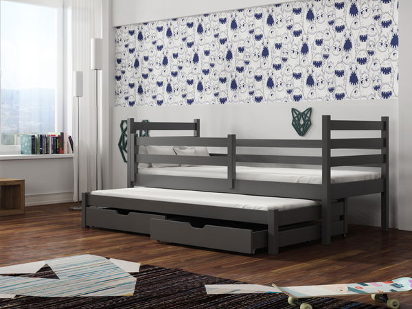 Gyerekágy 90 x 190 cm MONTY (ágyráccsal és tárolóhellyel) (grafit)