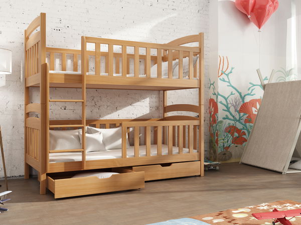 Gyerekágy 90 x 200 cm Antone (ágyráccsal és tárolóhellyel) (bükk)