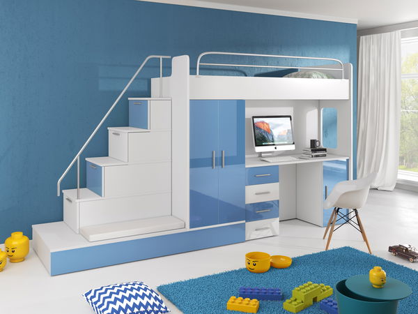- Gyerekágy Ruth V (Fehér + Kék) (ágyráccsal és matraccal)