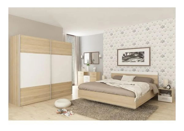 - Hálószoba (ágy 160X200 cm, 2 db. éjjeliszekrény, szekrény) Gabreola (szonoma tölgy + fehér)