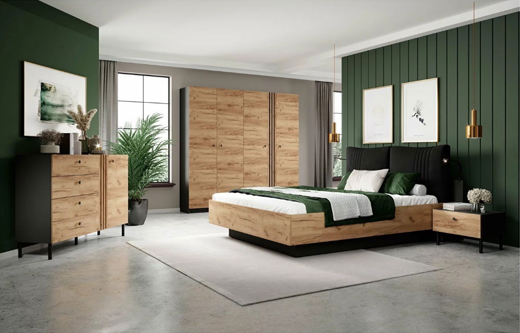 Éjjeliszekrény szett 2db. Dalde D (arany craft tölgy + antracit)