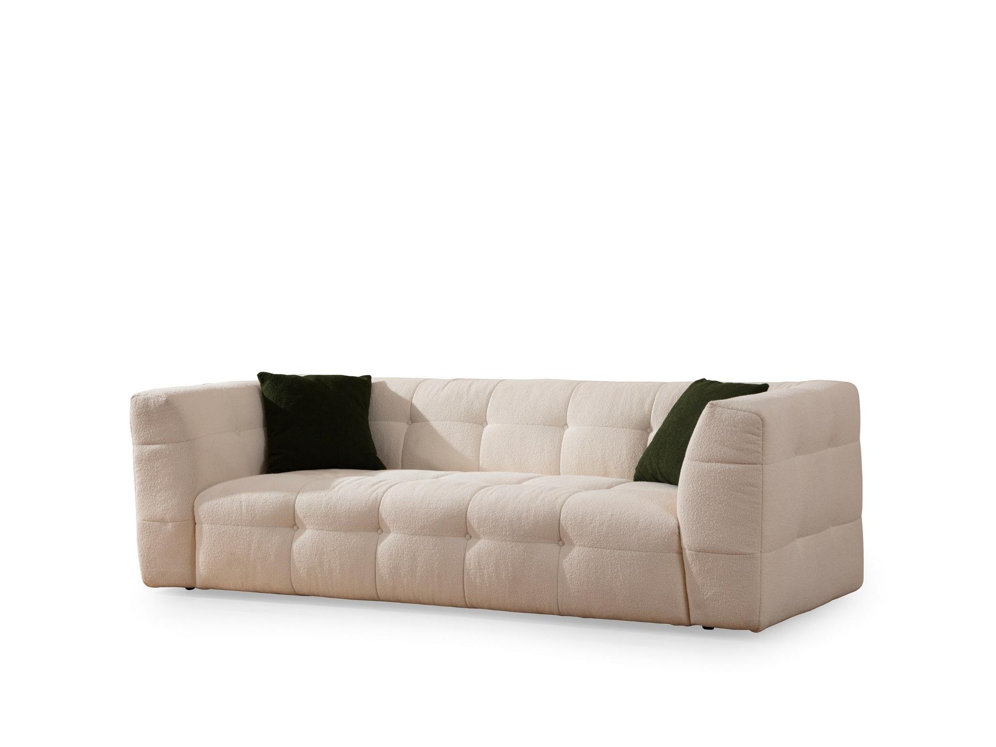 Hihetetlenül stílusos bútort keres otthonába vagy irodájába? A kanapé minden bizonnyal az Ön sztárja lesz. A boucle szövetet jellegzetes hurkos szerkezete jellemzi, amely meleg és puha megjelenést kölcsönöz a bútornak, és a test organikus formájával együtt az egész helyiség hangulatos dekorációját biztosítja. A kanapé ideális megoldás azok számára, akik értékelik az eredeti dizájnt és a kiváló minőségű kivitelezést. Egy ilyen bútor remekül fog kinézni a nappaliban vagy az irodában, ugyanakkor kényelmes pihenést és kikapcsolódást biztosít. A Catch 03 bézs színű szövet egy puha zsenília, amely dekoratív textúrájú. fonott fonal csomókkal és hurkokkal, amelyek juhra emlékeztetnek. Az anyag ellenáll a szakadásnak, hámlásnak, fénynek és súrlódásnak, így ideális a mindennapi bútorok kárpitozásához. Az anyag gyermekek és csecsemők számára biztonságos és környezetbarát. Égésgátló anyag.