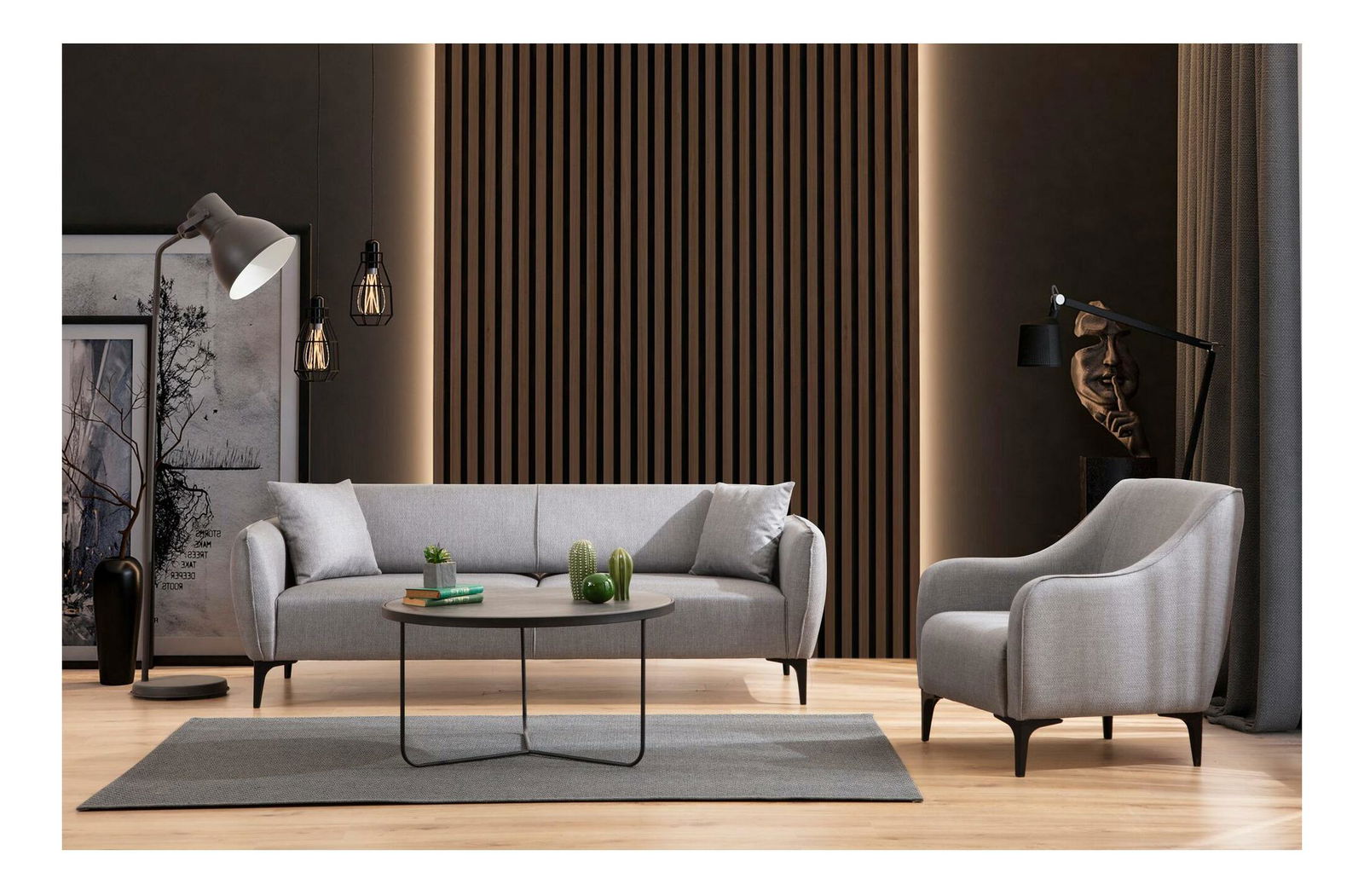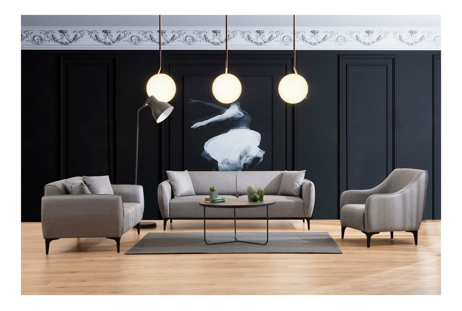 - Háromszemélyes kanapé Belasemma (szürke + fekete)