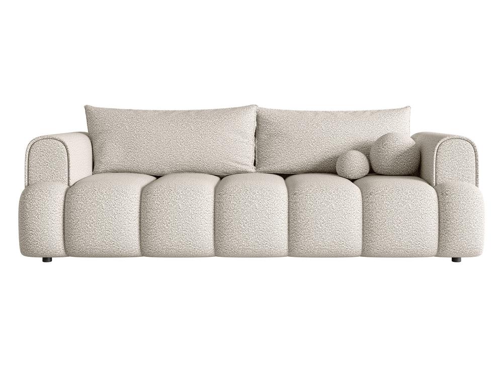 Olyan kikapcsolódást keres, amely könnyedséget és lágyságot kölcsönöz belső terének? Fedezze fel a kanapét, amely nemcsak varázst ad, hanem páratlan kényelmet és sokoldalúságot is kínál A kiváló minőségű poliuretán habból készült kanapé páratlan kényelmet biztosít a pihenéssel töltött hosszú esték során. Ideális hely a pihenésre egy fárasztó munkanap után, vagy eltölteni szeretteivel egy kedvenc filmet vagy könyvet. A DL alvás funkció kényelmes pihenést garantál Önnek és vendégeinek. Ennek köszönhetően könnyedén ággyá alakíthatja a kanapét, és így kényelmes alvást biztosíthat anélkül, hogy további helyet foglalna otthonában. Az ágyneműtartó praktikus megoldás, amely lehetővé teszi a rend fenntartását. Ennek köszönhetően az ágynemű mindig kéznél lesz, és pillanatok alatt elkészítheti a kanapét az alváshoz. A kárpitozott háttámlának köszönhetően a kanapé elölről és hátulról is jól mutat, ennek köszönhetően tökéletesen illeszkedik bármilyen belső kialakításba. A levehető háttámla párnák olyan praktikus megoldást jelentenek, amely megkönnyíti a karbantartást, és lehetővé teszi a kanapé testreszabását az egyéni preferenciáknak megfelelően. A bútorok boucle Coral szövettel vannak kárpitozva, ami nem csak a fényűző megjelenést, hanem a tartósságot és a könnyű tisztíthatóságot is garantálja. Ezt a szövetet egyedi megjelenése, puhasága és szilárd felépítése jellemzi. nem csak egy kanapé, hanem a kényelem és a stílus kvintesszenciája otthonában. Egyedi tulajdonságainak és funkcióinak köszönhetően minden nap különlegessé válik, és a vele töltött pillanatok új dimenziót kapnak. Fedezze fel a páratlan kényelmet és eleganciát a mai napon. Termék részletek: szabadon álló bútor kárpitozott háttámlával, DL alvó funkció, ágyneműtartó tálca, levehető háttámla párnák, díszpárnák mellékelve, T31/150 sűrűségű poliuretán hab ülés. Világos bézs színű színű Magic Velvet 2274 szövettel kárpitozott bútor. A Magic Velvet puha fényű, stílusos bársony. Ellenáll a súrlódásnak, kopásnak és fénynek. A vízálló technológia hatására a folyadék cseppek formájában lecsapódik az anyag felületére. Az állatbarát technológia felelős az állatok tevékenységével szembeni fokozott ellenállásért. Lángálló szövet.