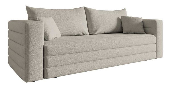 Értékeli az elegancia és a praktikum kombinációját? Válassza a mi kanapénkat, és biztosan nem fog csalódni A háromszemélyes kanapé a kényelem és az egyedi dizájn alapja. A kanapé egyik legpraktikusabb eleme az alvás funkció. A DL összecsukható mechanizmusnak köszönhetően kényelmes ülésből pillanatok alatt kényelmes ággyá válik. Könnyen igazíthatja igényeihez, és kényelmes pihenőhelyet biztosíthat magának vagy vendégeinek. Ha a kényelemről van szó, a kanapé nemcsak nagyszerű helyet kínál az ülő- és alváshoz, hanem egy másik praktikus elemet is biztosít. A kanapé belseje ágynemű és egyéb szükséges kiegészítők tárolására szolgál. Az ágyneműk rejtett tárolója segít rendben tartani a helyiséget, és gondoskodik arról, hogy mindig kéznél legyen minden, ami az ágy megmunkálásához szükséges. A kanapé befejezéséhez használt boucle szövet luxus és hangulatos megjelenést kölcsönöz a kanapénak, és jellegzetes hurokszerkezet jellemzi, amely ezt adja. háromdimenziós megjelenés. Ezek a fülek egyedi textúrát és textúrát adnak az anyagnak. Termékleírás: szabadon álló modell, i.e. párnázott háttámlával, a DL alvás funkció lehetővé teszi a sarokülés nagyon gyors kihajtását, alapfelszereltségként az ágyneműtálca, belül Bonnell rugók - ülés és háttámla. A bútor sötét bézs színű Abramo 02 szövettel kárpitozott. Azz Abramo puha, kellemes tapintású boucle szövet. Ennek az anyagnak nagyon erős és csavart szövése van. Az Abriamo ellenáll a súrlódásnak, kopásnak és hámlásnak.