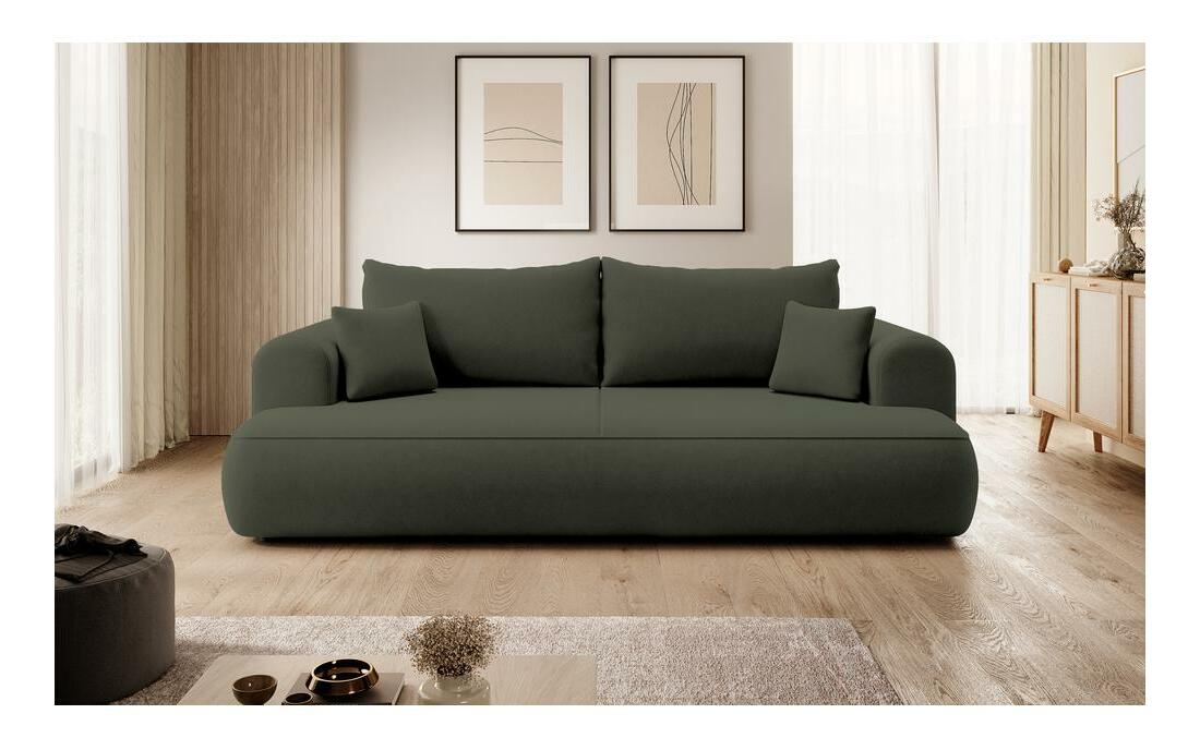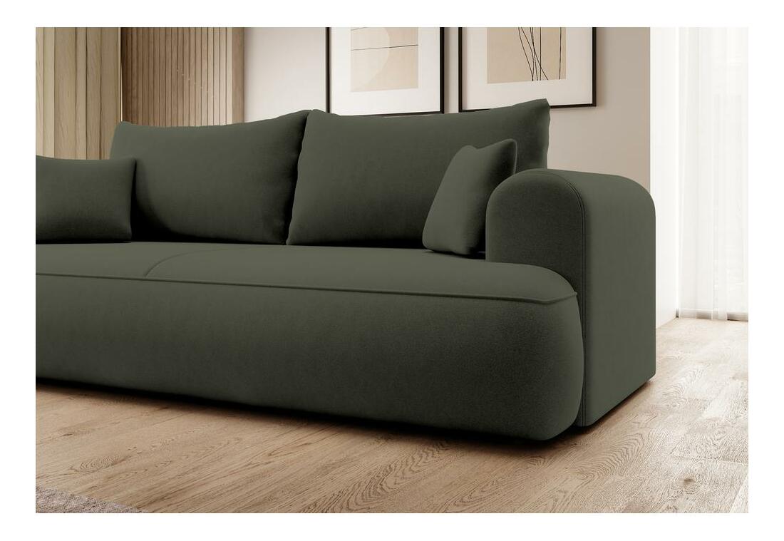 MutasdSzeretné modern és kényelmes pihenőteret kialakítani? Akkor kanapénk tökéletes választás! A kihúzható kanapé igényes felhasználók számára készült, vázát hullámrugókkal és rugalmas poliuretán habbal töltött üléssel, ami az operettel együtt megfelelően alátámasztja a gerincet. Hosszú órák tévénézése vagy baráti beszélgetések során sem fog fájni a hátad. A DL rendszerrel könnyen átalakítható kényelmes ággyá, és tágas tárolóhelyet biztosít a textíliák számára. Termék részletei:Habsűrűség: T35. Kihúzható mechanizmus: DL. Dekoratív párnák: Alapfelszereltség. Leválasztható háttámpárnák: Igen. Bútor anyaga: könnyen tisztítható Castel 39 olíva színű szövet. Tulajdonságai: Puha, sima anyag, nagy kopás- és pillingállósággal, ideális mindennapi bútorokhoz. Easy Clean technológia: Könnyen tisztítható vízzel és puha ronggyal.
