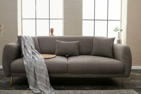 - Háromszemélyes kanapé Simeon (szürke + arany)