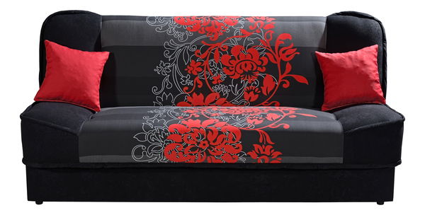 Háromszemélyes kanapé Ülőke Finka 3R (fekete + piros virág)