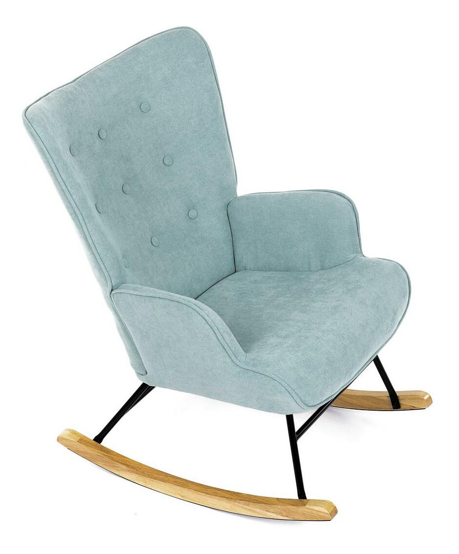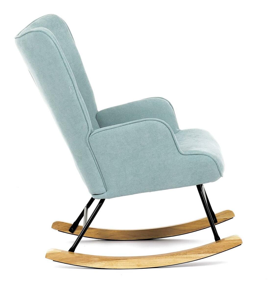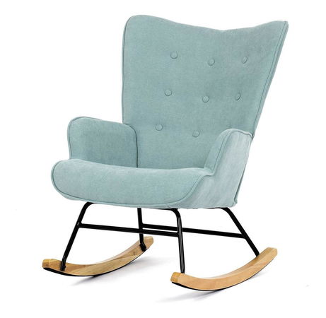 MutasdEz a luxus hintaszék modern dizájnnal harmóniát és stílust visz otthonába. Az elegáns kék színű, sima szövet tökéletesen illik a természetes tömörfa lábakhoz, kifinomult megjelenést kölcsönözve. A hintaszék stabilitást és kényelmet biztosít a mindennapi használat során. A háttámlán lévő díszgombok finom díszítőelemet adnak, amelyet minden apró részletek kedvelője értékelni fog. Ez a szék ideális választás üzletek és magánvásárlók számára, akik minőségi bútorokat keresnek eleganciával teli vonásokkal.