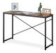 MutasdA márka stílusos íróasztala ideális választás otthoni irodába vagy dolgozószobába. A natúr MDF asztallap, régi fa dekorációval, elegáns megjelenést kölcsönöz az asztalnak, míg a masszív fekete fém szerkezet stabilitást és tartósságot biztosít. Kompakt méreteinek köszönhetően kisebb helyiségekbe is elfér anélkül, hogy elveszítené praktikumát. Minimalista kialakításának köszönhetően könnyedén illeszkedik mind a modern, mind a klasszikus enteriőrökbe. Ez az íróasztal a funkcionalitás és a vonzó megjelenés nagyszerű kombinációja a munkavégzéshez.