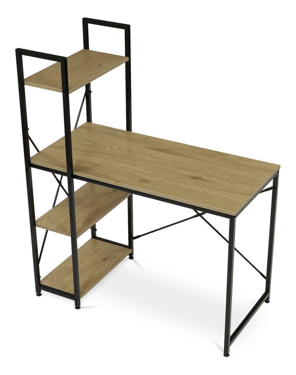 MutasdAz ipari stílusú íróasztal nagyszerű választás modern irodákba és otthoni irodákba. A barna tölgyfa dekoráció és a fekete fém konstrukció kombinációja vonzó és tartós dizájnt teremt. Az íróasztal praktikus tárolóhelyet kínál a négy további polcnak köszönhetően, amelyek rengeteg helyet biztosítanak könyvek, dokumentumok vagy dekorációk számára. Az MDF lap matt felülete könnyű karbantartást és elegáns megjelenést biztosít. Ez a funkcionális és stílusos bútordarab tökéletesen illeszkedik olyan belső térbe, ahol értékelni fogja a praktikumot és a modern megjelenést.