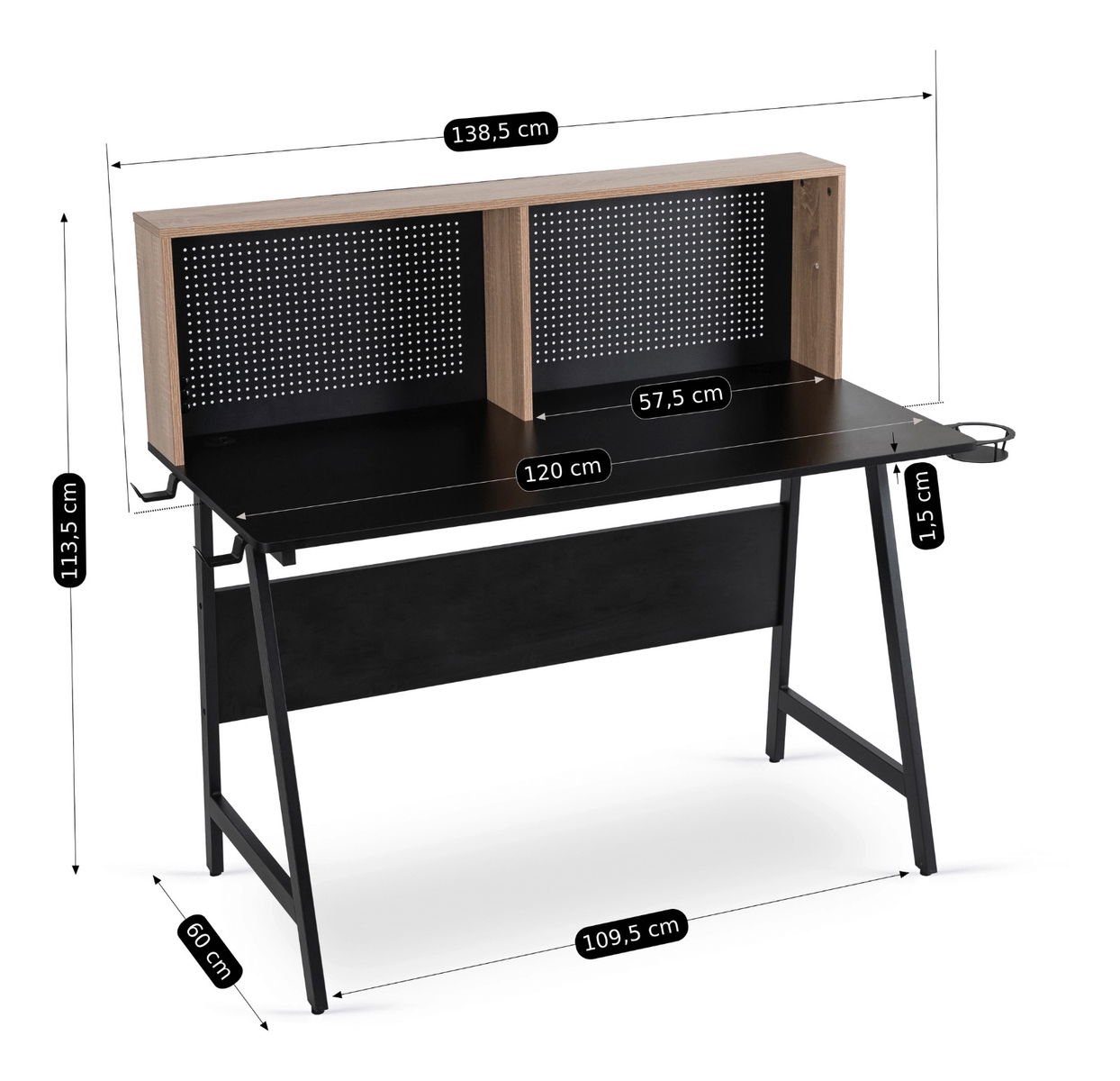 Íróasztal Ivuma (fekete + sonoma tölgy)