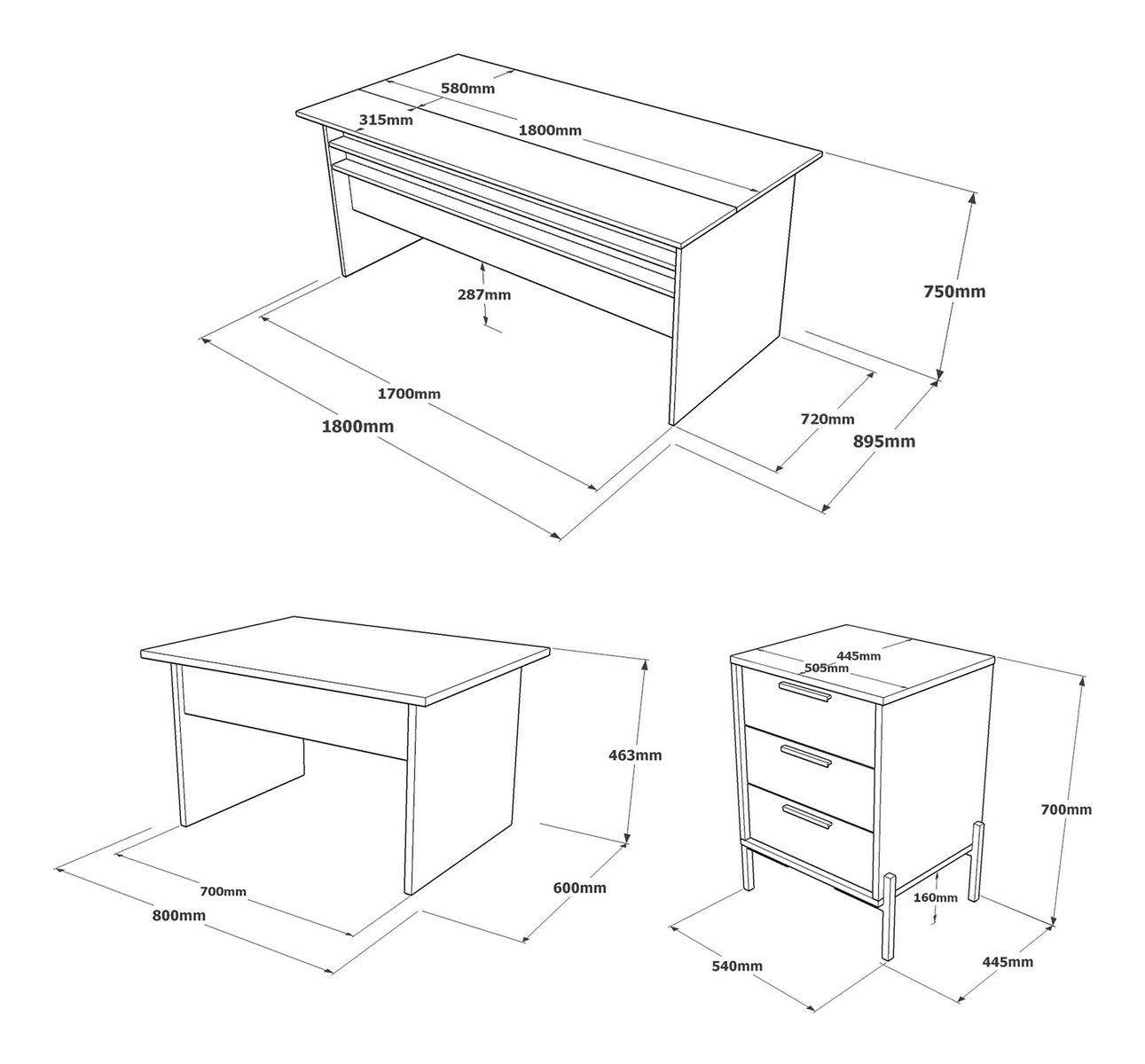 PC asztal: szélesség: 180 cm magasság: 75 cm mélység: 89,5 cm
