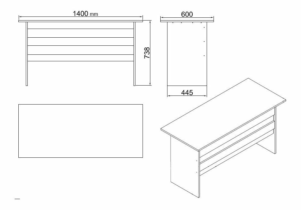 PC asztal: szélesség: 140 cm magasság: 73,8 cm mélység: 60 cm