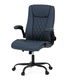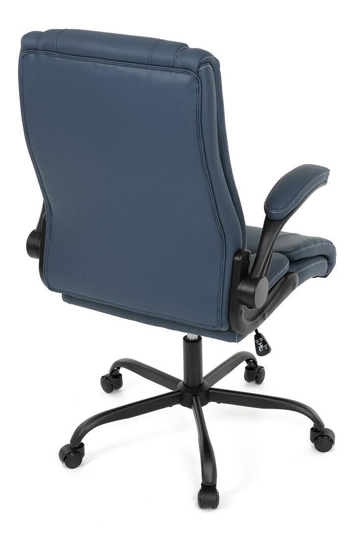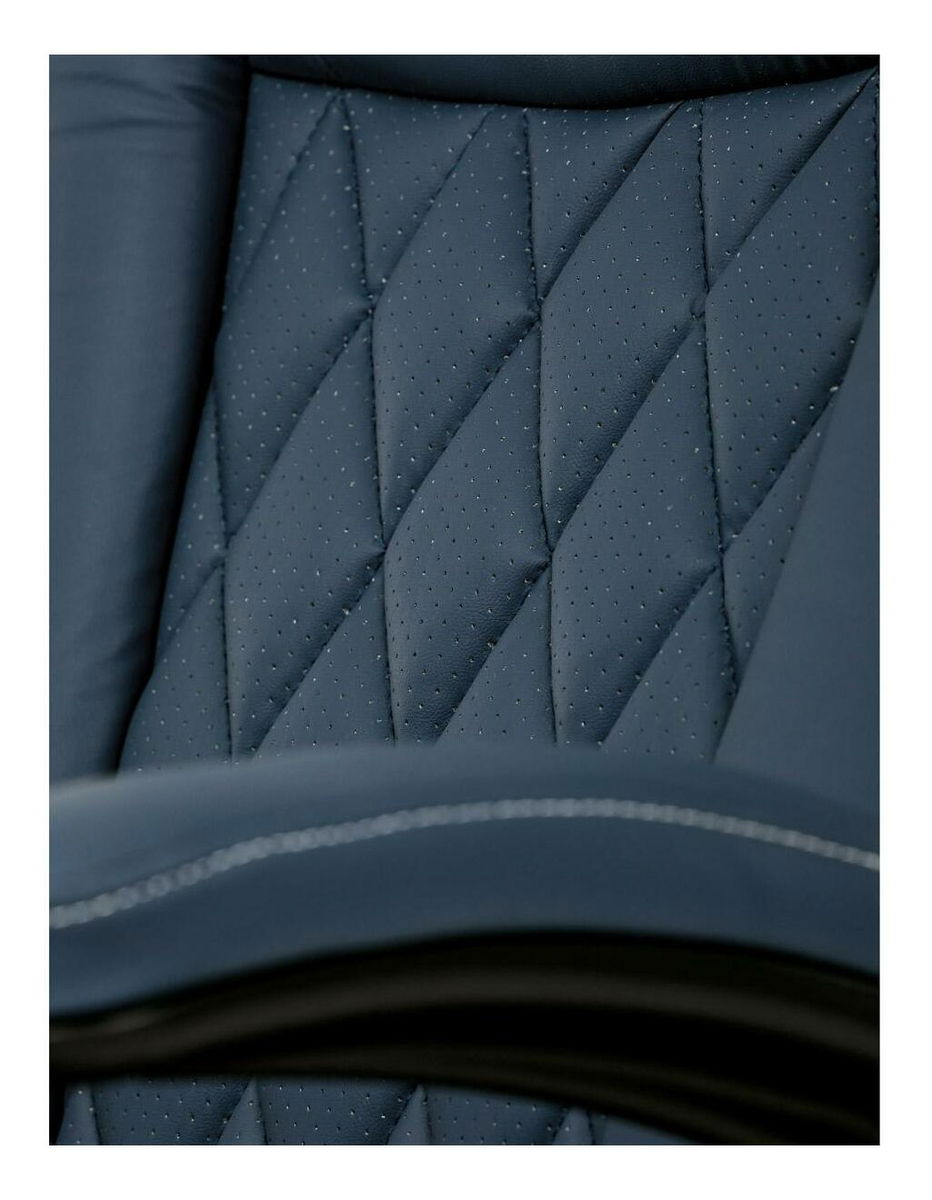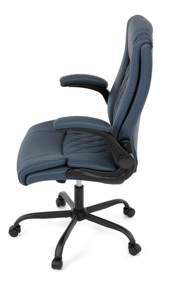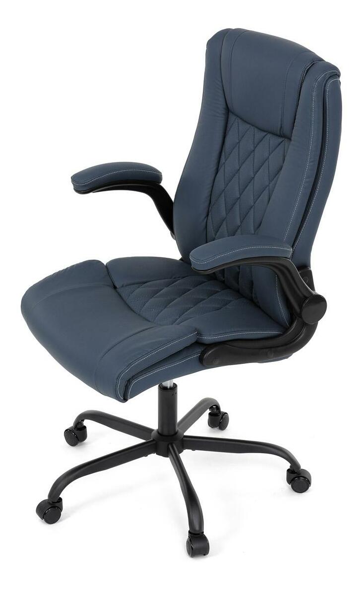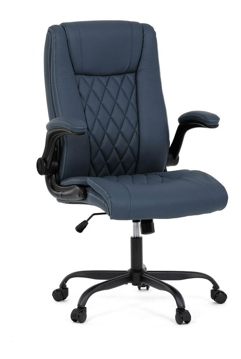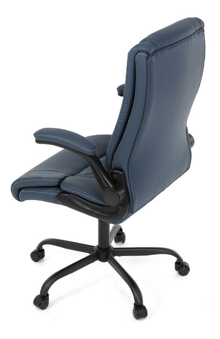 MutasdA részletekre való aprólékos odafigyeléssel kidolgozott szék a kényelem és az ipari elegancia ötvözete. Az élénkkék műbőr kárpit nemcsak szemet gyönyörködtető, de környezetbarát is, sima textúrát és tartósságot ígérve. Elegáns kialakításával ez a szék könnyedén felemeli bármely irodát, étkezőt vagy kreatív teret, ahol csak elhelyezkedik. A szék kárpitozott karfákkal rendelkezik, amelyek kihajthatók a nagyobb rugalmasság érdekében, így a funkcionalitás és a stílus egyedülálló kombinációját kínálják. A háttámla mentén található dekoratív varrás kifinomultságot kölcsönöz a széknek, biztosítva, hogy ez a darab nemcsak kényelmével, hanem a kifinomult ízlés kifejezésével is kitűnjön. Szinte bármilyen dolgozó- vagy étkezőasztalhoz illő szék ötvözi a stílust a praktikummal. A fejtámla és a deréktámasz hiányát gondosan ellensúlyozza az általános ergonomikus kialakítás, amely a támasztó és kényelmes ülésre összpontosít. A szék a luxust és a professzionális megjelenést testesíti meg, akár munkahelyi környezetbe, akár magánlakásba illik.