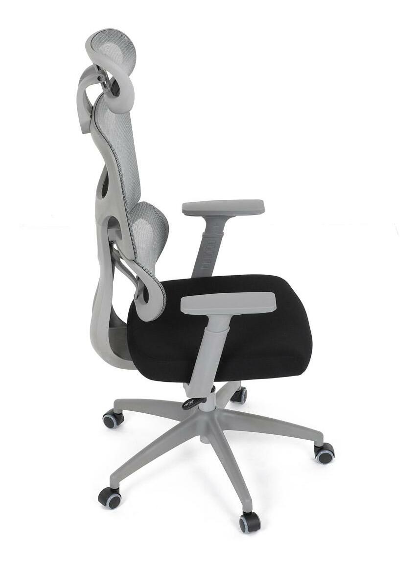 MutasdEz a letisztult, modern irodai szék kiváló kényelmet és stílust kínál. Az ergonomikusan formázott deréktámasz és az állítható fejtámla tökéletes támaszt nyújt hosszú munkaórák során. A szürke hálós huzatok szellőzőek és kopásállóak anélkül, hogy a luxus jegyeit feláldoznák. A kárpitozott karfák hiánya letisztult és minimalista dizájnt biztosít, amely bármilyen modern enteriőrbe illeszkedik. A kényelem és a stílus ezen kombinációja ideális választás mind a szakemberek, mind az otthoni irodák számára.
