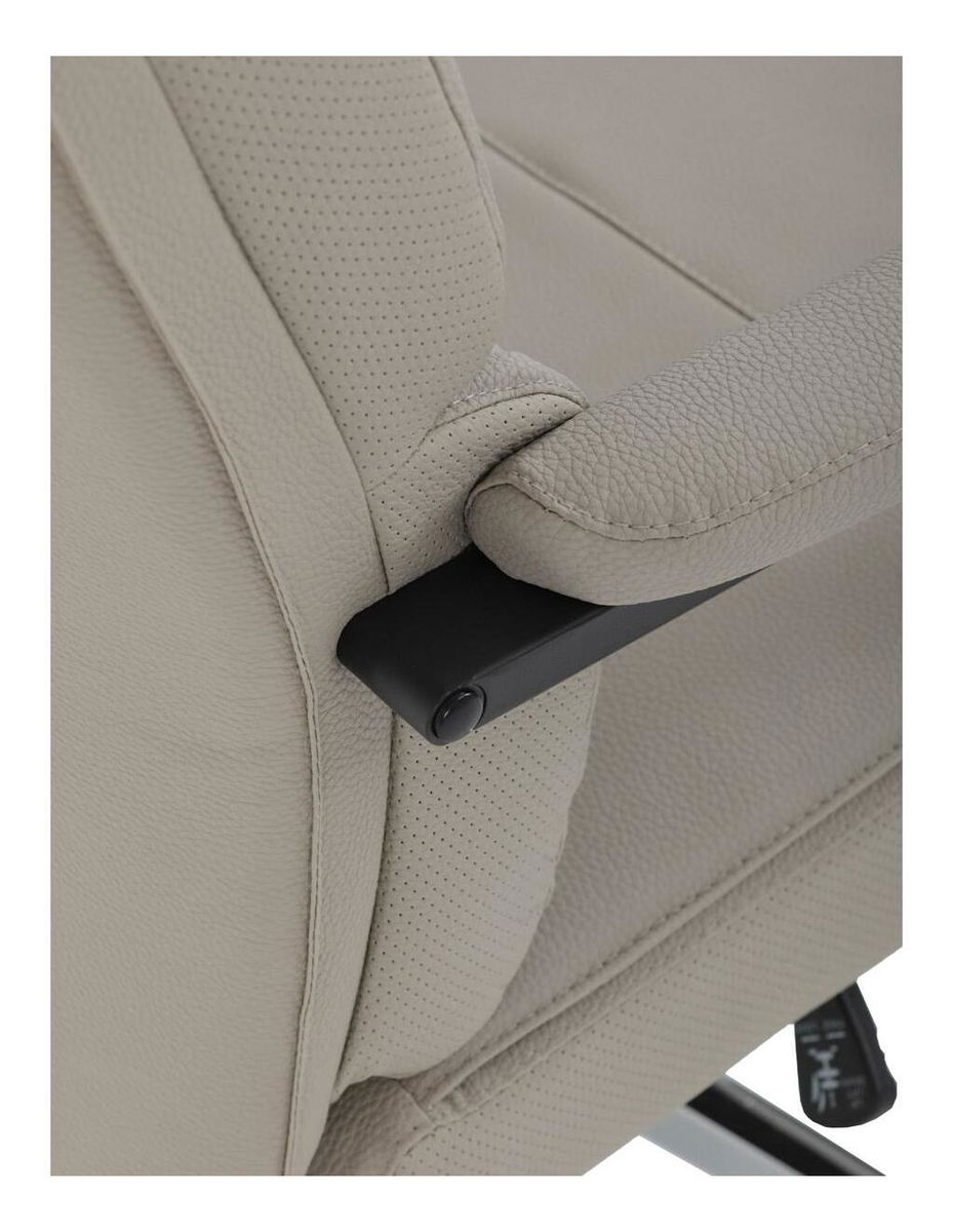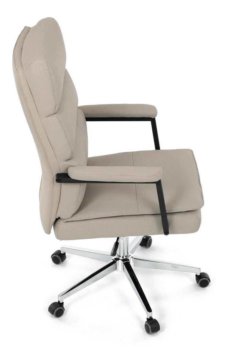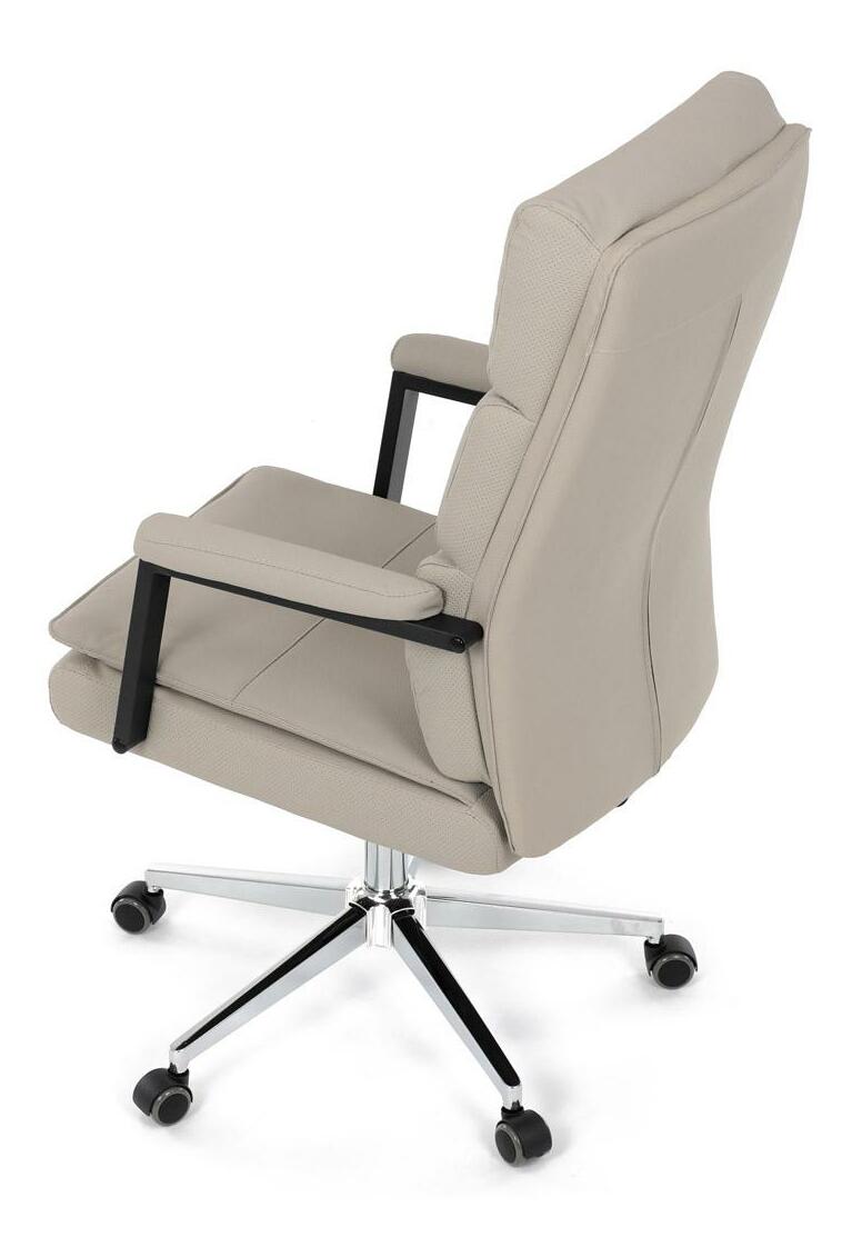 MutasdA márka modern bézs dizájnú irodai széke az elegancia és a funkcionalitás tökéletes kombinációja. A strukturált öko-bőrből készült huzat luxus megjelenésű és könnyen karbantartható, amit a mindennapi használat során értékelni fog. A párnázott karfák és a dupla ülés magas kényelmet biztosítanak a munka során. A stabilitást krómozott kereszttartó garantálja, amely kopásálló is. A hintamechanizmus lehetőséget biztosít a ellazulásra a munkanap során. Ez a szék stílusos és praktikus kiegészítője lesz irodájának vagy otthoni irodájának.
