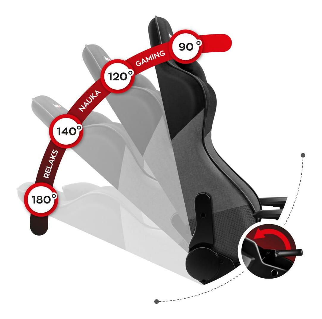 a háttámla dőlésszögének beállítása reteszeléssel + hinta funkció, állítható ülőmagasság, ergonomikus, derékpárna