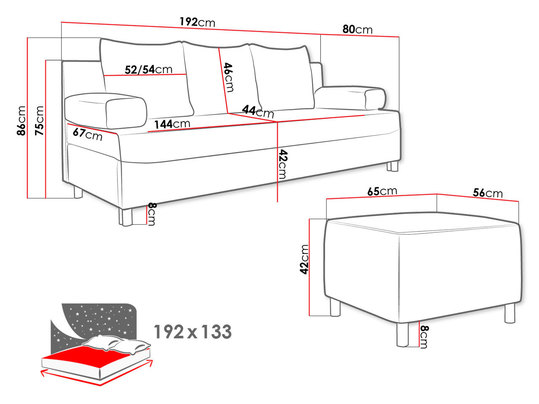 Kanapé Dorien zsámollyal (Lux 05 + Lux 06)