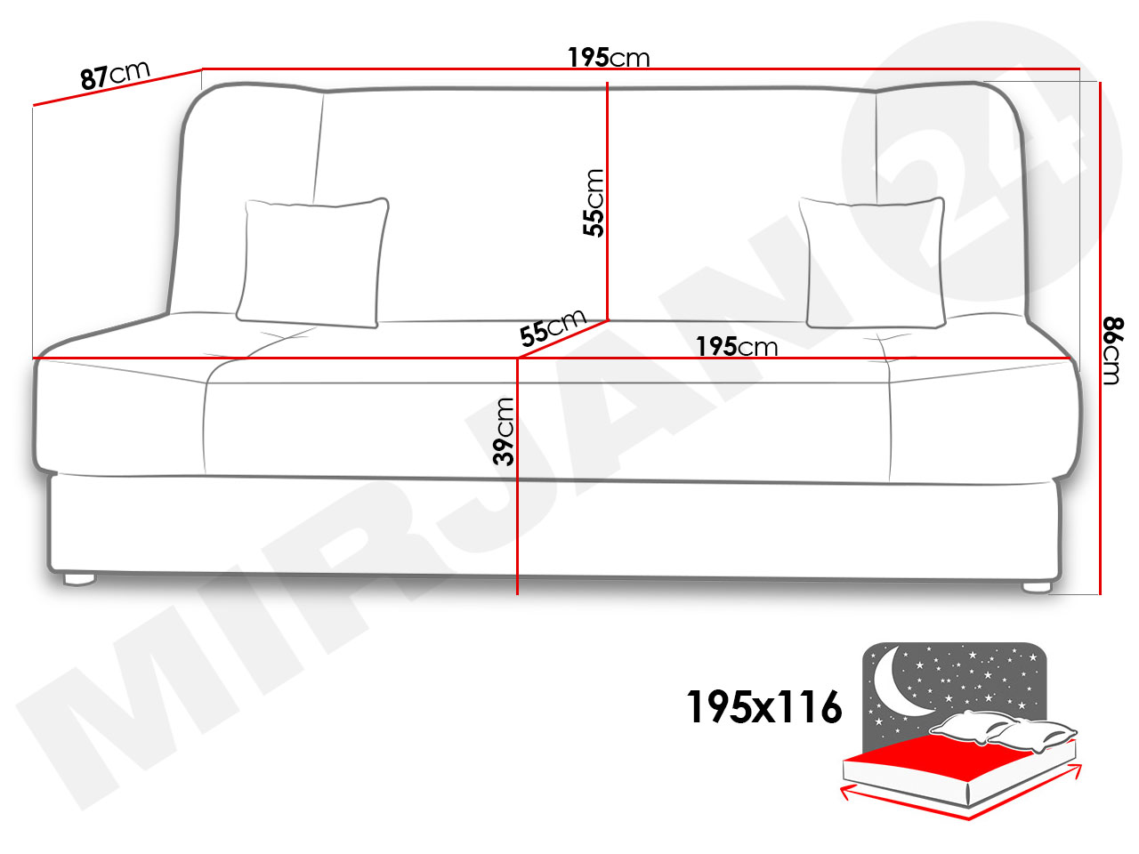 hosszúság: 170 cm, szélesség: 73 cm, magasság: 18 cm