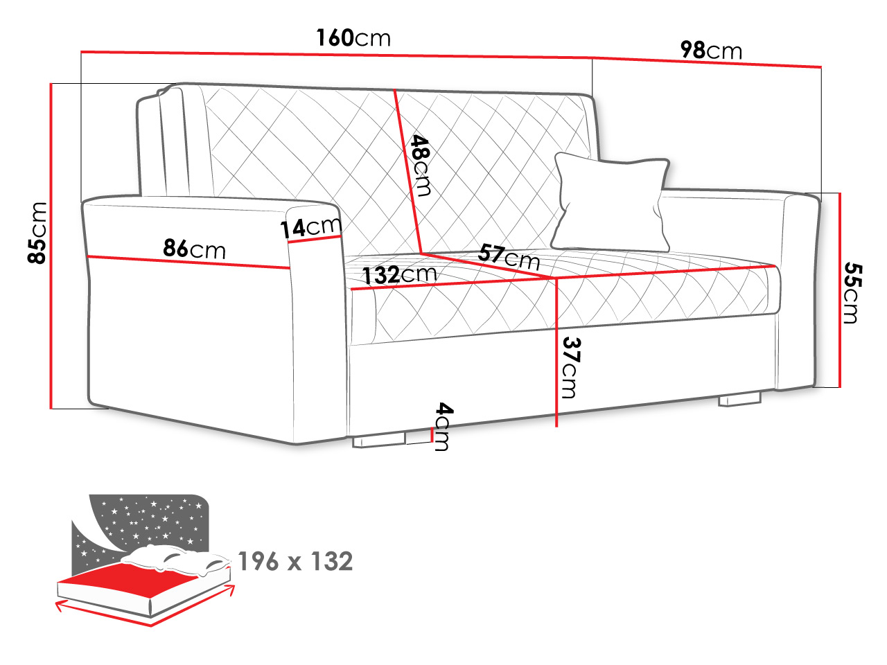 hosszúság: 129 cm, szélesség: 66 cm, magasság: 19 cm
