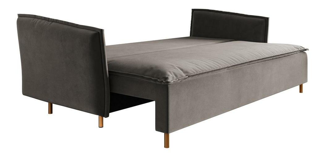 MutasdÉrtékeli a stílusos elrendezéseket? A kanapé tökéletes választás lesz. Az ummo kanapé modern dizájnja funkcionalitással párosul. Az egyszerű forma vékony karfáival a magas fémlábakra támaszkodik. A szerkezetet puha habszivacs és profilozott hullámrugók töltik ki - ennek a szerkezetnek köszönhetően a bútor gyorsan visszanyeri eredeti megjelenését anélkül, hogy horpadt és deformálódna. A kanapé részét képező párnák minimalista megjelenése ellenére hangulatossá teszik és pihenésre ösztönzik. A bútor alvó funkcióval rendelkezik, és DL mechanizmussal van felszerelve, amely lehetővé teszi, hogy a kanapét gyorsan kényelmes ággyá alakítsa, nagy területtel. A praktikus tárolóhely lehetővé teszi a vendégek számára tartalék ágynemű tárolását. Termékleírás: ülőhelyek száma: 3, arany színű lábak, bútor saját összeszereléshez, kárpitozott bútor háttámla, kivehető párnák, díszpárnák mellékelve. A termék szürke Magic A Velvet 2241szövettel kárpitozott. A Magic Velvet egy stílusos bársony lágy fényezéssel. Ellenáll a súrlódásnak, a csomósodásnak és a fénynek. A vízálló technológia hatására a folyadék cseppek formájában lecsapódik az anyag felületére. Az állatbarát technológia felelős az állatok tevékenységével szembeni fokozott ellenállásért. Lángálló szövet.
