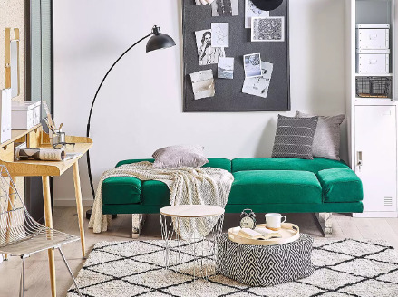 A kínálatban leggyakrabban kétszemélyes összecsukható ülőgarnitúrát talál, de vannak háromszemélyesek is. A szófa azonban széthúzva legfeljebb két ember számára biztosít helyet az alváshoz és a pihenéshez. Ha a nappalit később hálószobává alakítja, a többi bútort is ennek megfelelően állítsa be. Éjjeliszekrények helyett használjon dohányzóasztalt vagy TV-szekrényt. Szerezzen be egy zsámolyt tárolóhellyel, és vegyen egy állólámpát tompító funkcióval az éjjeli lámpák helyett.