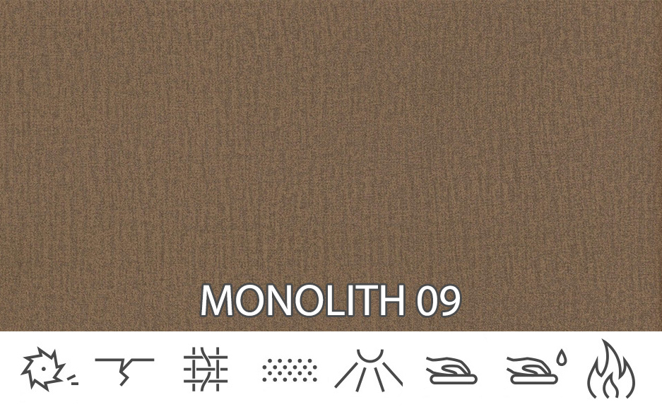 A Monolith egy strapabíró plüss anyag, amely kellemes tapintású. Egy speciális védőréteg borítja, amely hidrofób réteget hoz létre, amely megvédi a kiömlött folyadékok gyors felszívódását. Nagyon ellenáll a kifakulásnak és a foltosodásnak. A szövetet árnyékoló anyag jellemzi. Kárpitápoló szerekkel tisztítható. Nem szabad fehéríteni vagy túl magas hőmérsékletnek kitenni – ne szárítsa a szárítóban.