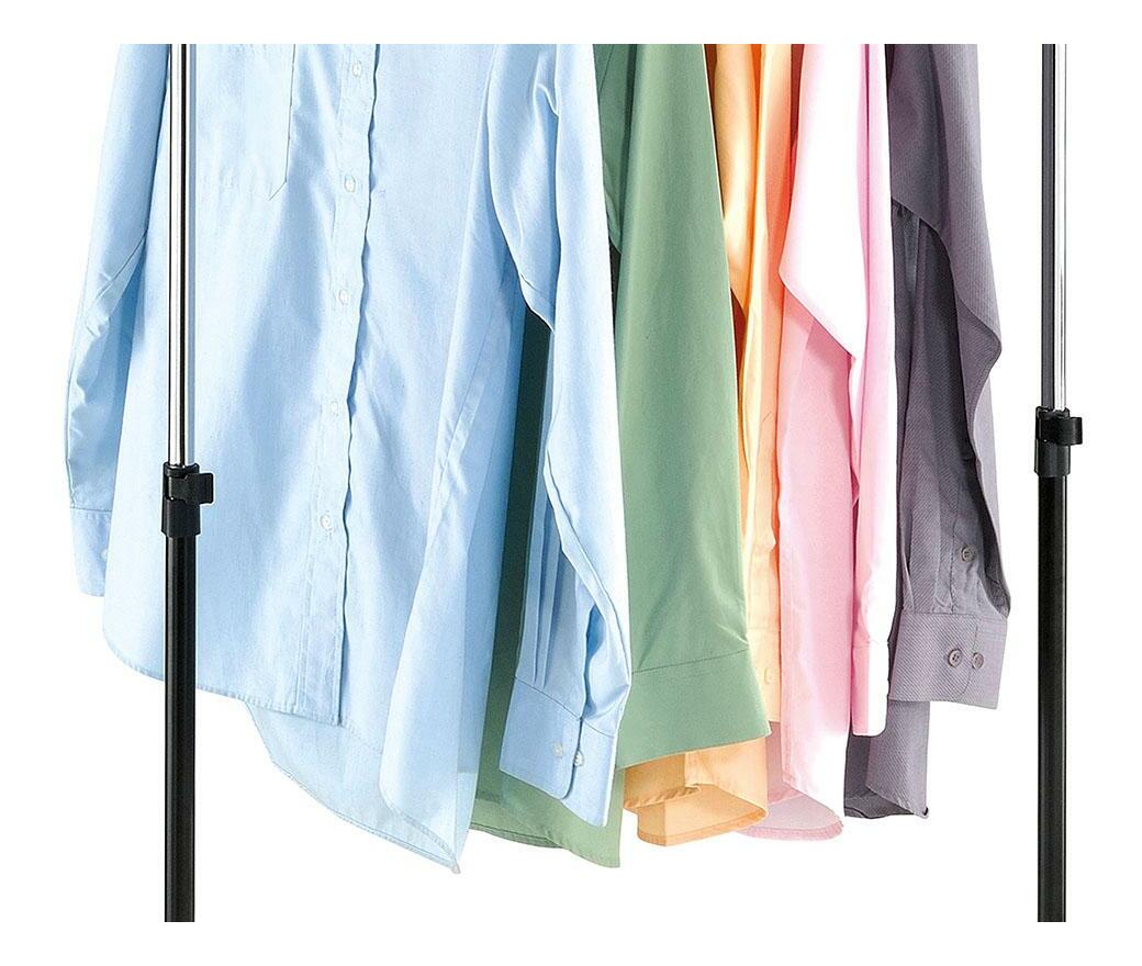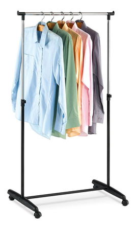 MutasdEgykarú ruhaállvány reteszelésmentes mozgással, króm/fekete fém és műanyag kivitelben. Az ajánlott teherbírás 5 kg egyenletesen elosztott terhelés karonként. Az állvány háztartási használatra készült, nem nagy igénybevételre tervezett használatra. Állítható magasságú. Szétszerelt állapotban szállítjuk.