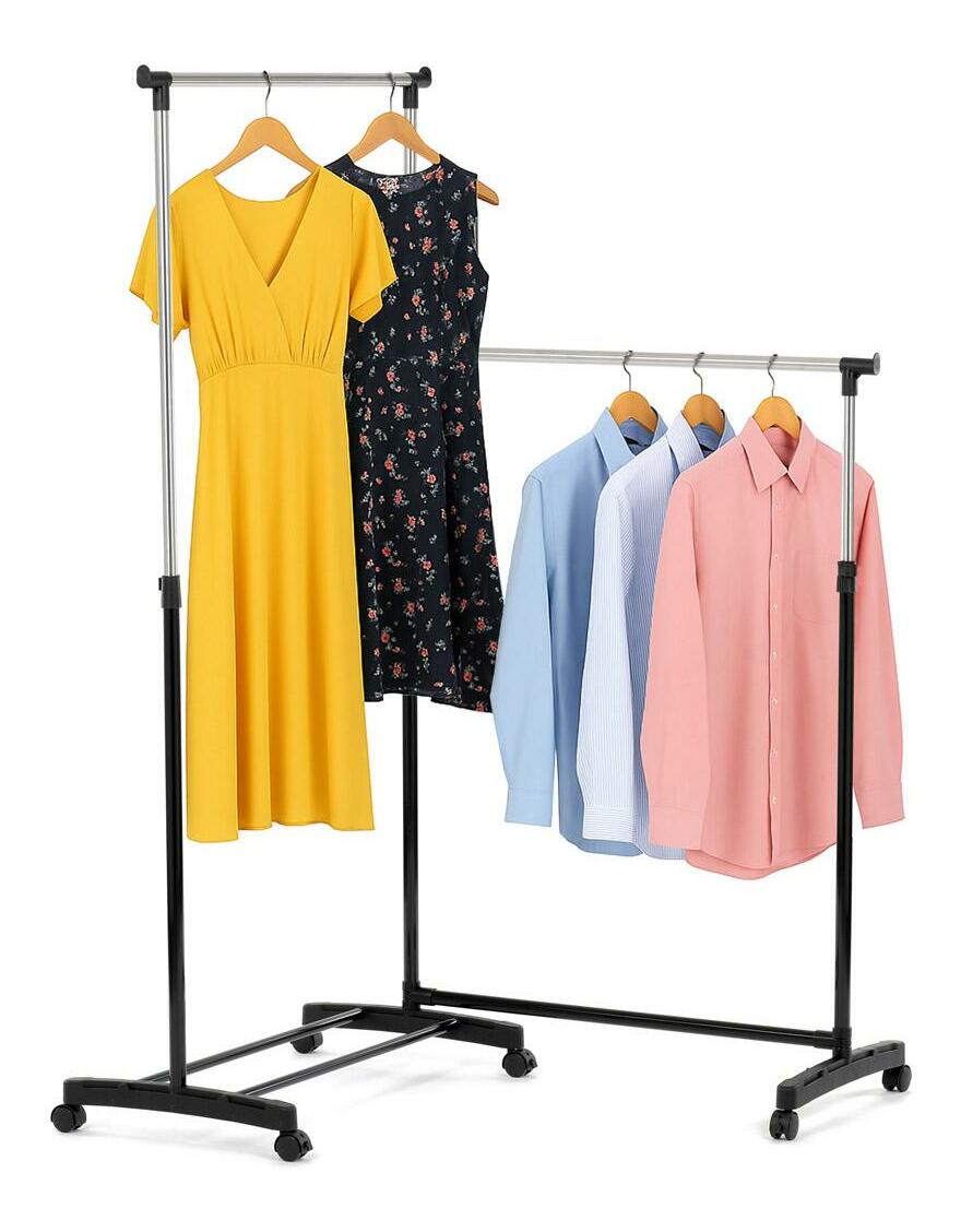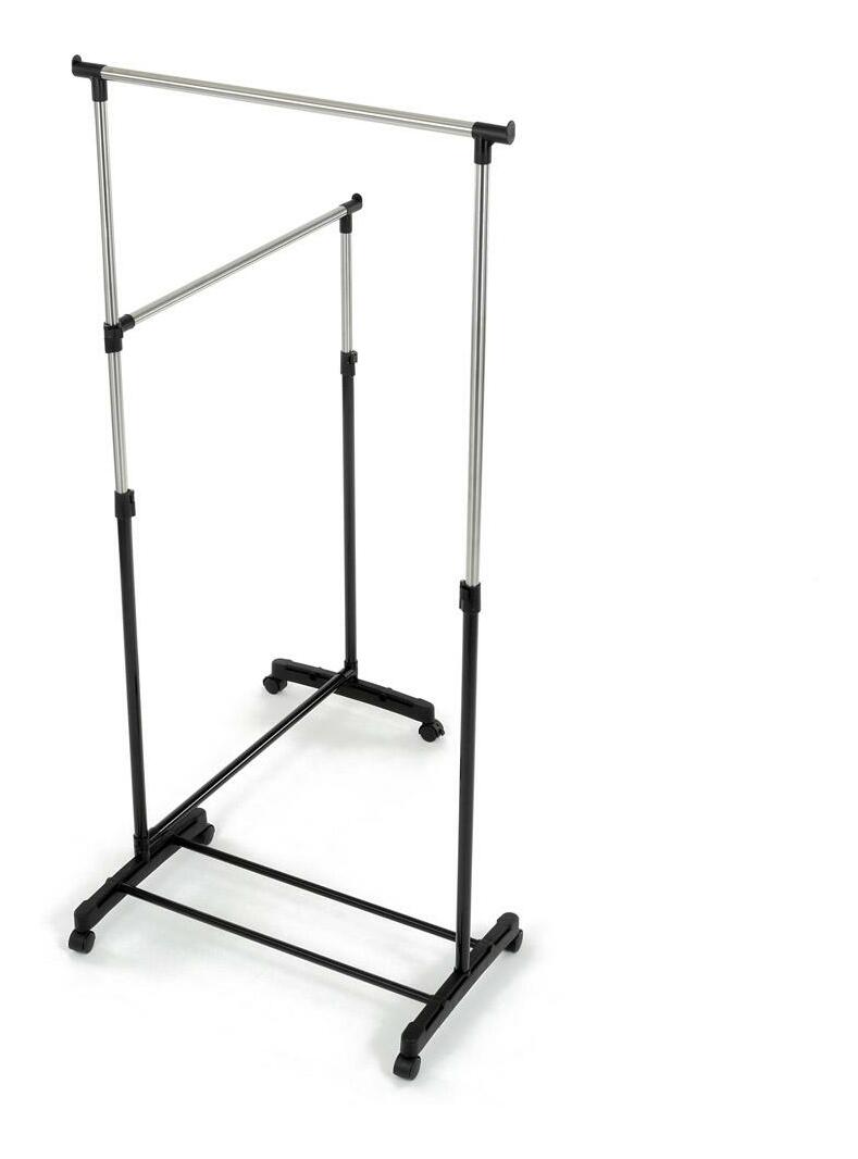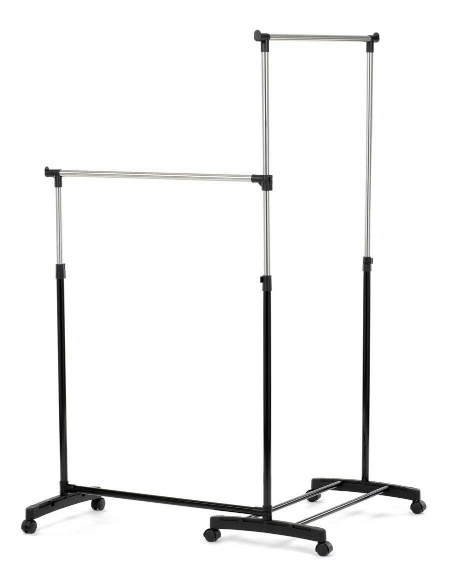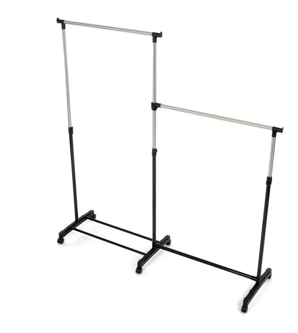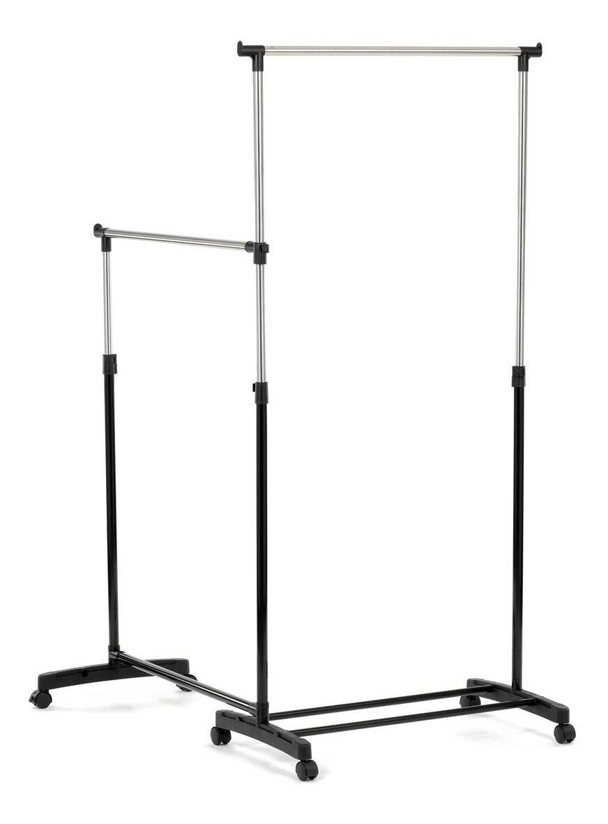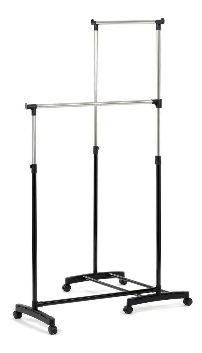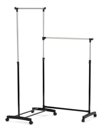 MutasdA dupla ruhaállvány ideális megoldás a tárolóhely maximális kihasználására. A stabil fémszerkezet kerekekkel kombinálva könnyű kezelést és nagy teherbírást tesz lehetővé. Két tágas rúd rengeteg helyet biztosít a ruhák felakasztására, ideális öltözőkbe, hálószobákba vagy előszobákba. A minimalista fekete dizájn könnyen alkalmazkodik bármilyen belső térhez. Praktikusságának és rugalmasságának köszönhetően ez az állvány tökéletes választás a mindennapi használatra és a szezonális ruhatár rendszerezéséhez.