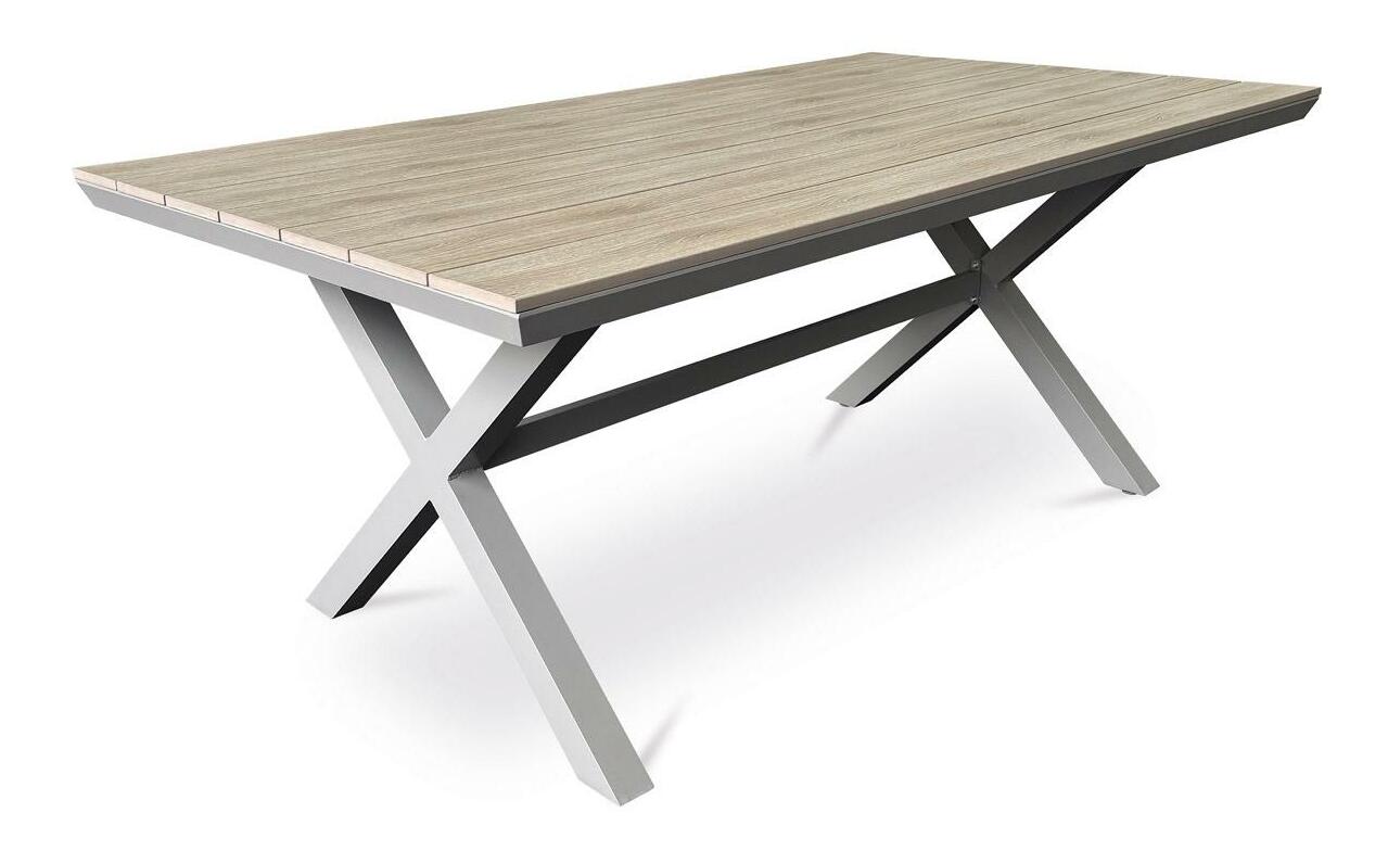 Ez a kerti asztal ideális választás kültéri ülőhelyekhez. A modern dizájnú alumínium asztal világos tölgyfa asztallappal tökéletesen illeszkedik bármilyen kültéri térbe. Az alumínium talpnak köszönhetően stabil és könnyű egyszerre, ami megkönnyíti a kezelését. Az alumínium szerkezet nem melegszik fel a napon, és még évekig tartó használat után sem korrodálódik. Ez a kerti asztal hosszú élettartamot garantál még igényes körülmények között is. Tökéletesen illeszkedik bármilyen kertbe vagy teraszra, ahol kellemes helyet teremt a családdal és a barátokkal való találkozáshoz.
