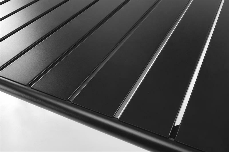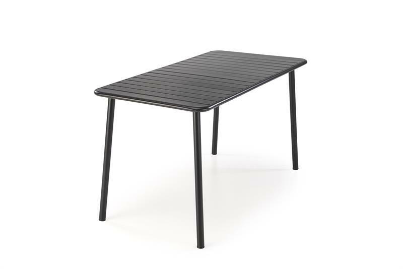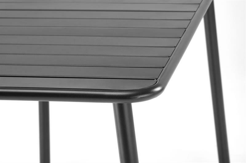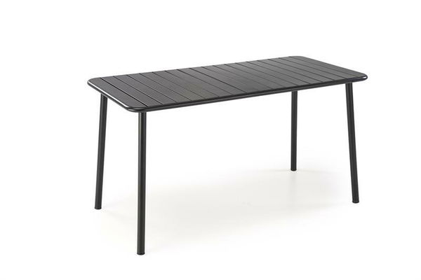 Ez a modern kerti étkezőasztal a stílus és a praktikum ideális kombinációját képviseli. Az asztallap fémből készült és porszórt bevonattal rendelkezik, ami garantálja a hosszú élettartamot és az egyszerű karbantartást. Az asztalt négy, szintén porszórt fémláb támasztja alá, amelyek stabil és masszív szerkezetet biztosítanak. Téglalap alakú formája elegendő helyet biztosít a kényelmes étkezéshez. Ez az asztal nem összecsukható, így nagyszerű bútordarab mindennapi használatra az étkezőben vagy a konyhában.