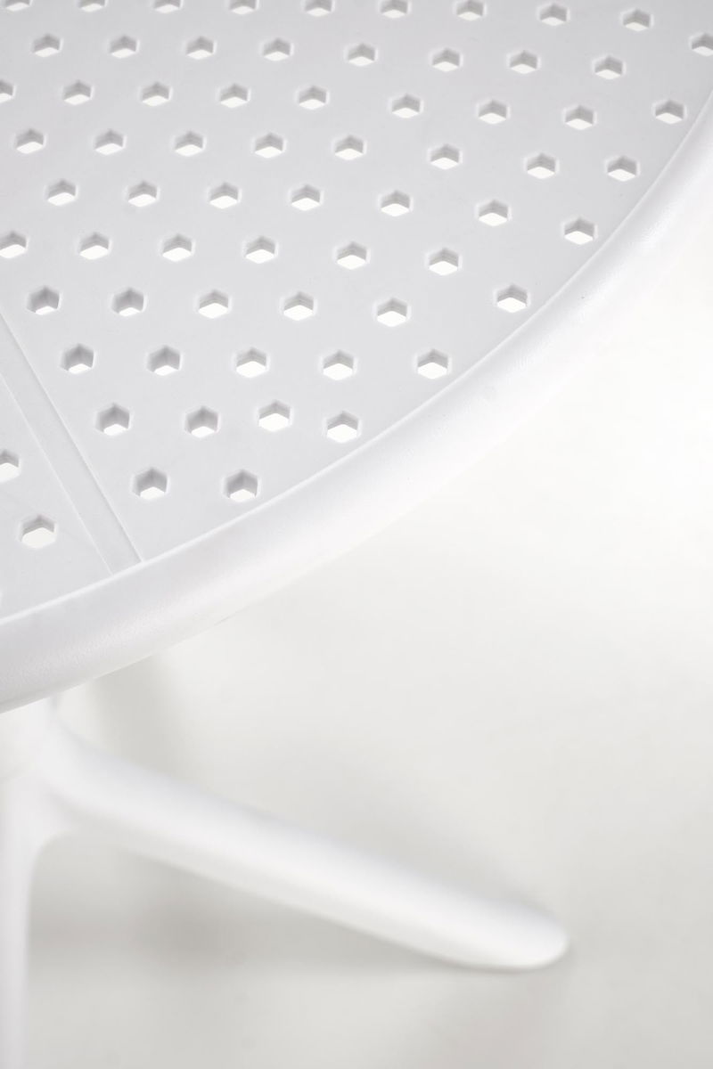 MutasdEz a kicsi, modern kerti asztal ideális választás azoknak, akik értékelik a funkcionalitást és a stílust. Az asztallap és a lábak polipropilénből készülnek, amely biztosítja a könnyű karbantartást és a sérülésekkel szembeni ellenállást. Az asztalnak egy központi lába van, amely négy stabil támasztékra ágazik, biztosítva az erőt és az egyensúlyt. Az asztal kerek formája optimalizálja a teret, minden oldalról könnyű hozzáférést tesz lehetővé, ugyanakkor elegendő felületet biztosít egy személy kényelmes étkezéséhez. Ez az asztal nem összecsukható, ezért mindennapi használatra alkalmas kisebb helyiségekben, például stúdiókban vagy kis konyhákban.