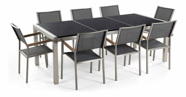 - Kerti étkező szett Grosso (fekete + grafit) (szürke szék) (8 személy részére) (kő)