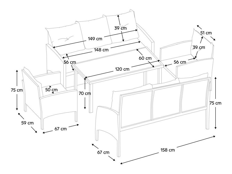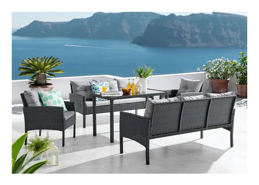 Kerti garnitúra Leran 210627 (fekete + szürke) (8 fő részére)