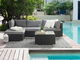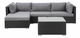 1 x lábtartó, 1 x dohányzóasztal, 2 x sarokkanapé, 1 x karfa nélküli ülés, párnák