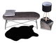 A szett két fotelból és egy kerek asztalból áll edzett üveg asztallappal.