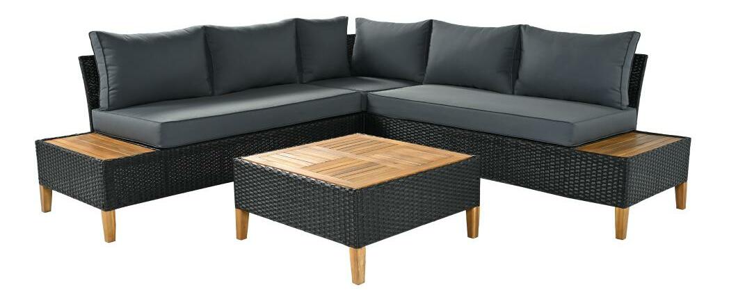 Kerti rattan szett Malcolm (fekete + szürke + natúr)