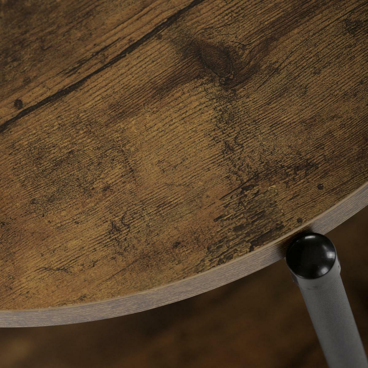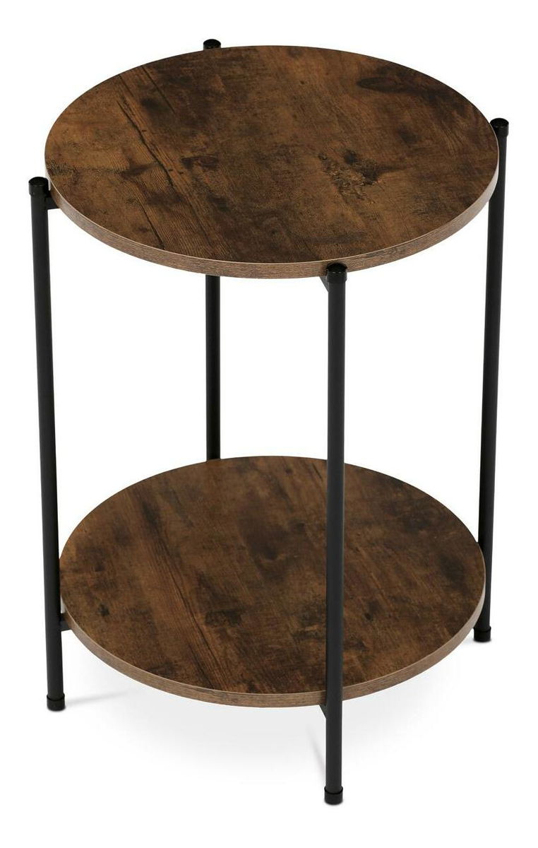 MutasdA márka modern port stílusú dohányzóasztala a minimalista dizájnt és a funkcionalitást ötvözi. A régi fa dekorációjú kerek asztallapok természetes eleganciát kölcsönöznek az asztalnak, míg a fekete lakkozott fém váz stabilitást és tartósságot biztosít. Két praktikus polc rengeteg helyet kínál dekorációk, könyvek vagy egy csésze kávé tárolására. Sokoldalú megjelenésének köszönhetően ez az asztal ideális választás a nappaliba, a hálószobába vagy az irodába. Vigyen stílust és praktikumot otthonába ezzel az időtlen darabbal!