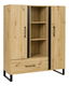 A Filippa nappali szekrénysor elkápráztatja Önt nem szokványos megjelenésével. A három részre osztásnak köszönhetően a szekrény nagyon praktikus. A szekrény felső része polcokkal van felszerelve, melynek felét díszléccel ellátott ajtó fedi. A szekrény aljánban tágas fiók található. A Filippa modellcsalád a modern és a hagyományos ötvözete az olyan fémelemeknek, mint a fogantyúk és lábak, valamint a dekorcsíkkal ellátott fa dekorációnak köszönhetően. A szekrény forgácslapból készült, ABS élekkel.