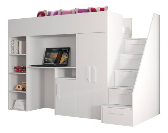 Kombinált gyerekágy 90 cm Puro 14 (matt fehér + fényes fehér + fényes fogantyúk)