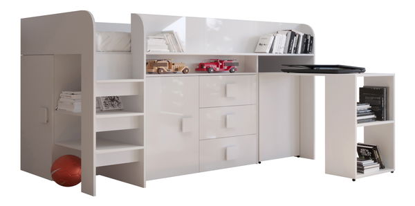 Kombinált gyerekágy 90 cm Toreno 1 (fehér + fényes fehér + fényes fehér fogantyúk)
