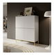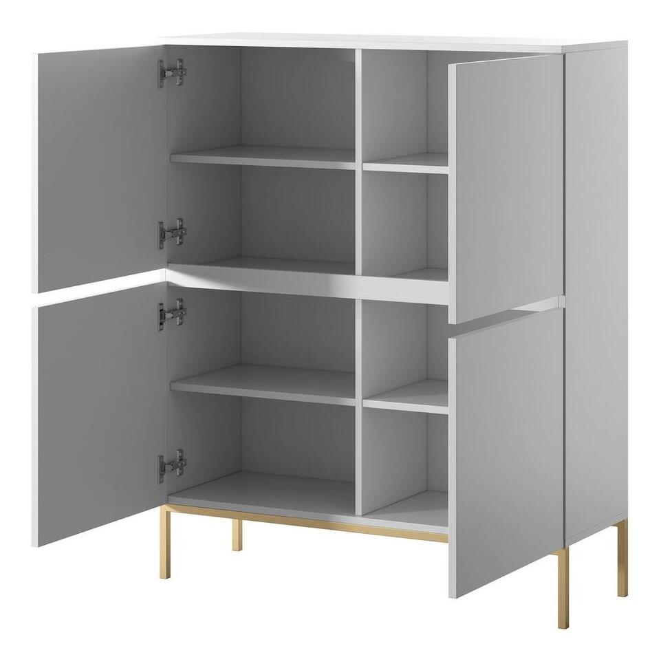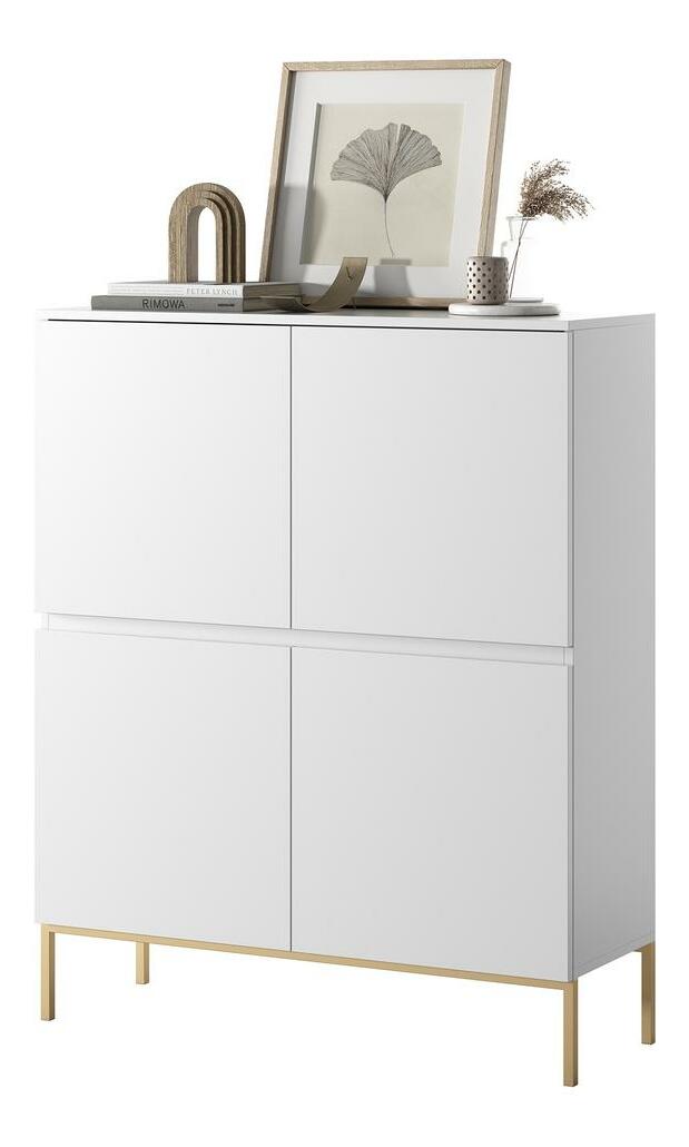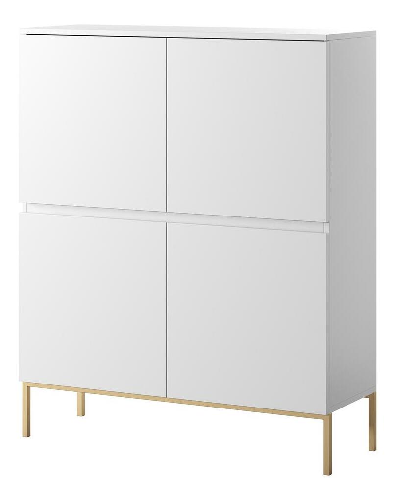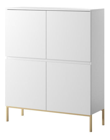 MutasdOlyan bútort keres, amely egyszerű formájú és tökéletesen illeszkedik a legtöbb elrendezéshez? Akkor a kollekció biztosan érdekelni fogja! A magas komód univerzális formájú, keskeny acéllábakra helyezve, amelyek vizuális könnyedséget kölcsönöznek az egésznek. A fehér szín és az arany lábak kombinációja tökéletesen illeszkedik nemcsak a minimalista, hanem a modern és hangulatos belső térbe is, csipetnyi csillogással. A bútor belsejében négy praktikus polcra van osztva a tér, amelyeken minden holmija sikeresen elfér. A bútor előnye a magas lábak, amelyek segítségével a takarítórobotok könnyedén tisztán tarthatnak a bútorok alatt. Részletek: bútor 16 mm-es forgácslapból, talp: acélprofil 18x18 mm, arany porfesték, maximális polcterhelés: 5 kg, szín: wotan fehér.