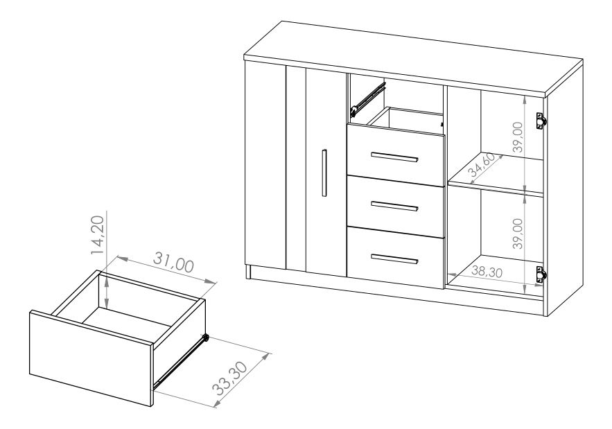 Korpus: Forgácslap (16 mm) + Felső deszka: Forgácslap (22 mm)