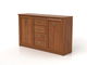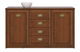 Szép antik karaktérű komód, mely nagyon szép kiegészítője lesz előszobájának, hálószobájának, nappalijának vagy dolgozószobájának. A komód bal és jobb oldalán ajtókkal felszerelt. A középső részén négy praktikus fiók helyezkedik el. Az ajtók és a fiókok díszes fém fogantyúkkal felszereltek.