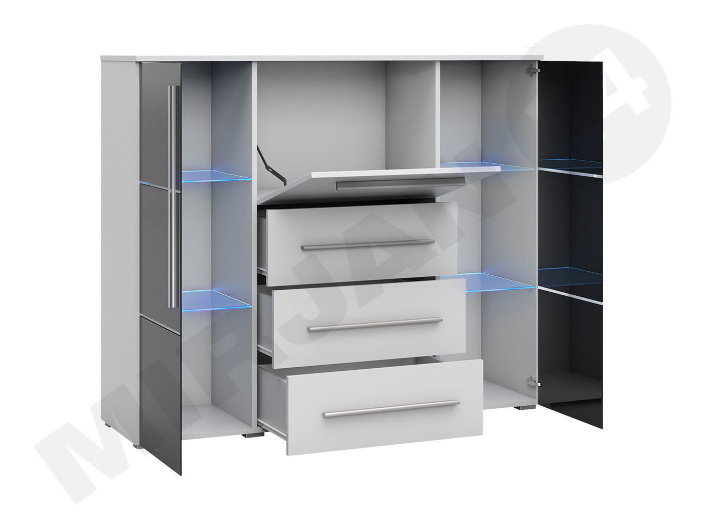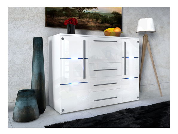 MutasdA komód ideális választás azok számára, akik kényelmet és stílust keresnek. A Brita komód azoknak szól, akiknek sok fiókra van szükségük a tároláshoz. A divatos színek kombinációja egyedülálló megjelenést kölcsönöz neki. A fényes elülső rész a komódot a nappali, a hálószoba és az előszoba egyedülálló dísztárgyává teszi. Tökéletesen illeszkedik a nappali többi bútorához vagy a Brita faliszekrényhez, amely ugyanabból a kollekcióból származik. Méretek: szélesség: 136 cm, magasság: 115 cm, mélység: 39 cm Színek: színválasztási lehetőség itt Gyártás: laminált lemez, fiókok előlapjai és szegélyei fényes MDF lemezből, ajtók előlapjai fényes üvegből, PVC fogantyúk, kék LED világítással A termék méretei centiméterben vannak megadva, és ± 3 cm-rel eltérhetnek a tényleges méretektől. A bútorok méreteit az ügyfelek kérésére nem módosítjuk. Garanciális idő: 24 hónap