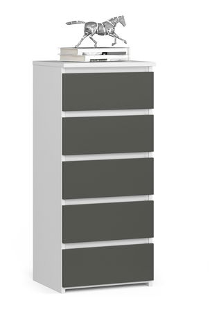 A Cipriano III komód (fehér + szürke) egy funkcionális és stílusos bútor otthonába. Ez a 92 cm magas, 40 cm széles és 35 cm mély fiókos szekrény elég kompakt, miközben rengeteg tárolóhelyet kínál. Minőségi anyagból készült, amely biztosítja szilárdságát és tartósságát. Fehér és szürke színével bármilyen belső térbe illeszkedik, és modern és elegáns megjelenést kölcsönöz otthonának. A Cipriano III komód ideális megoldás holmija stílusos rendezésére.